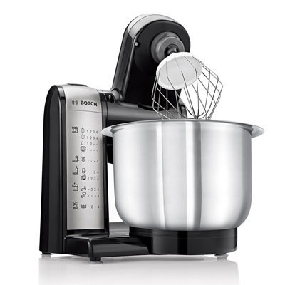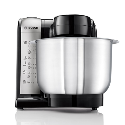 Die Bosch MUM48A1 Küchenmaschine in edlem Edelstahl-Design ist ein wahrer Alleskönner. Neben der Teigverarbeitung können auch Obst geschnitten oder Käse gerieben werden. Mit dem 3D-Multifunktionsarm, der durch den leistungsstarken 600-Watt-Motor betrieben wird, stellen diese Arbeitsvorgänge kein Problem dar und sind schnell erledigt.