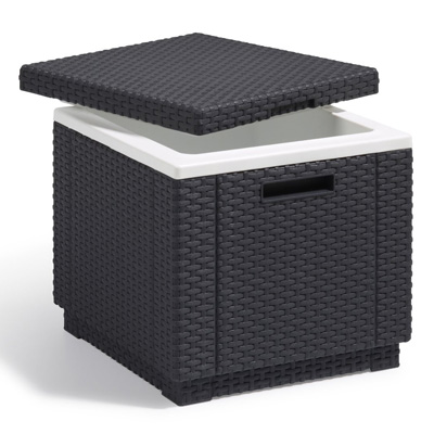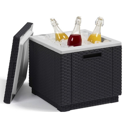 Diese trendige Allibert Kühlbox Ice Cube in offener und naturgetreuer Rattanoptik ist das Highlight in jedem Garten. Durch die doppelwandige Konstruktion bleiben Getränke mit Hilfe des mitgelieferten Coolpack oder Eiswürfeln eine lange Zeit kühl.