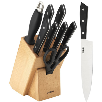 Aicok Messer zeichnen sich durch hochwertige geschmiedete Klingen aus deutschem Edelstahl aus. Jede Klinge ist aus einem einzigen Stück Stahl gefertigt, was höchste Stabilität und eine perfekte Balance verspricht. Dieses Küchenmesser Set garantiert Ihnen professionelle Kochergebnisse. Alle Messer dieses Sets sind äußerst brauchbare Küchenhelfer, welche Ihnen die Zubereitung von Lebensmitteln sehr erleichtern werden.
