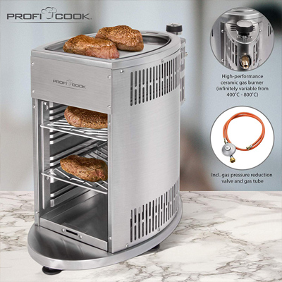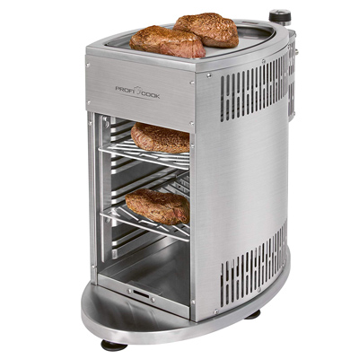 Englisch, Medium Rare oder lieber Well Done? Bereiten Sie leckeres Steak ganz nach Ihrem Geschmack mit dem Edelstahl-Beef-Steaker PC-GBS 1178 von ProfiCook zu. Der 800°C-Hochleistungsgrill lässt Hobbygriller zu Steakprofis aufsteigen. Auf zwei je 30 x 18 cm großen Edelstahl-Grillrosten finden Sie genügend Platz für mehrere Steaks - gemütliche Treffen mit Freunden und Familie werden mit Gourmet-Steaks zum Highlight. Neben schmackhaften Steaks können Sie auch Aufläufe, Pizzen, „Crispy Bacon“ und Desserts mit dem PC-GBS 1178 zubereiten. Oder Sie veredeln Sous Vide gegartes Fleisch mit einer delikaten Kruste.