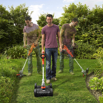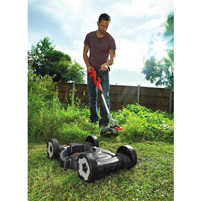 Der Black & Decker Akku-Multi-Trimmer STC1820CM ist ein 3-in-1 Multifunktionsgerät. Er lässt sich sowohl als herkömmlicher Rasentrimmer mit integrierter Kantenschneidefunktion mit Führungsrad, als auch als Rasenmäher mit entsprechendem Aufsatz verwenden. Der Rasentrimmer wird einfach auf die Basis aufgesetzt, für gleichmäßigen Schnitt größerer Rasenflächen. Zum Lösen verfügt die Basis über einen Fußraster. Darüber hinaus kann der Akku-Multi-Trimmer STC1820CM seine Schnitthöhe von 40 - 60 mm verstellen. Dank einer Schnittbreite von 28 cm eignet sich der Akku-Multi-Trimmer STC1820CM auch für größere Rasenflächen.