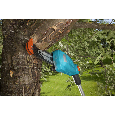 Der Gardena Hochentaster TCS Li-720/20 kommt zum Einsatz, um den Baumschnitt gekonnt, kraftschonend und vor allem sicher vom Boden aus zu erledigen. Der Griff zur Leiter oder mühsames Klettern in der Baumkrone gehören damit der Vergangenheit an. Mit einer maximalen Kettengeschwindigkeit von 13 m/s können sie schnell und effizient arbeiten und danach wieder Ihre Freizeit genießen.
