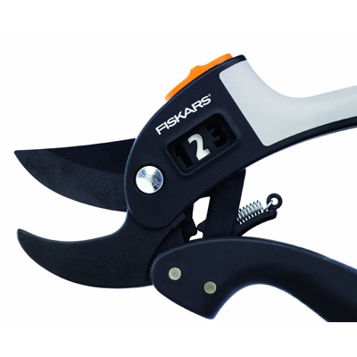Diese Fiskars PowerStep Gartenschere hat eine patentierte Technologie, die Schneiden von Zweigen mit deutlich reduziertem Kraftaufwand ermöglicht. Der intelligente Mechanismus stimmt die Zahl der benötigten Schnitte auf die Dicke des Zweiges ab.