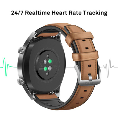 Die Huawei Watch GT ist aufgrund ihres Keramik-Lünette-Designs, des Edelstahlgehäuses und der DLC-Beschichtung unfallsicher. Mit nur 10,6 mm Dicke und einer AMOLED-Anzeige mit doppelter Krone (1,34 Zoll, 454 x 454 Pixel Auflösung) ist sie bemerkenswert praktisch und schlank. Die Huawei TruSeen 3.0 Herzfrequenz-Überwachungstechnologie ermöglicht eine effizientere und genauere Echtzeitmessung der Herzfrequenz mithilfe eines selbstlernenden Algorithmus und innovativer Sensoren. Modernes GPS unterstützt weltweit drei Satellitenortungssysteme (GPS, GLONASS, GALILEO), um eine genauere, schnellere und präzisere Ortung zu ermöglichen. Bei Aktivitäten unterstützt das Coaching für Einsteiger- und Fortgeschrittenenkurse, um in Echtzeit Anleitungen anzubieten und Feedback zu geben.