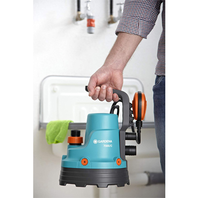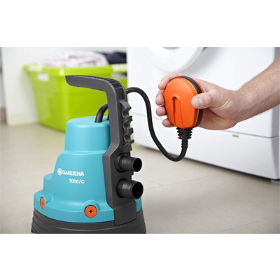 Die Gardena Classic Klarwasser-Tauchpumpe 7000/C findet beispielsweise ihre Verwendung, wenn die Waschmaschine die Waschküche unter Wasser gesetzt hat oder z.B. das Regenfass vor dem Winter ausgepumpt werden soll. Klares und leicht verschmutztes Wasser, bis zu 5mm Partikelgröße, pumpt sie schnell und zuverlässig bis zu 7.000 Liter pro Stunde. In das robuste Gehäuse aus Kunststoff ist der Schlauchanschluss so integriert, dass die Pumpe während des Betriebs nicht die Balance verliert und umkippt. Mit Hilfe des Schwimmerschalters schaltet sich die Pumpe automatisch ein bzw. aus.