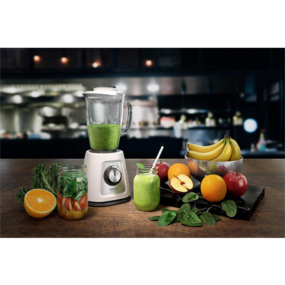 Der Krups KB4351 Blendforce+ Standmixer sorgt mit 800 W Leistung und insgesamt 6 Klingen mit Powelix Blades Technologie für optimale Mixergebnisse. Ein innovatives Kühlsystem sorgt für eine bessere Luftzirkulation, wodurch die Leistung des Motors verbessert wird und er bis zu 3 Minuten lang eingesetzt werden kann ohne zu überhitzen.