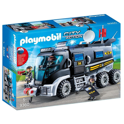 Sei mit dabei, wenn der SEK-Truck im Einsatz ist. Der Truck ist mit tollen Funktionen ausgestattet. So kannst du den Umschalter an der Unterseite des Soundmoduls nutzen, um zwischen zwei verschiedenen Sirenensounds zu wechseln. Außerdem ist auch das Dach des Wagens aufklappbar. Dadurch bekommst du einen tollen Einblick in das Innere des Einsatzfahrzeuges.