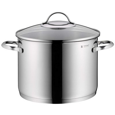 Mit seinem großen Fassungsvermögen ist der WMF Gemüsetopf ideal für Suppen, Eintöpfe, Gemüse und Spaghetti geeignet. Durch den hohen Rand wird die aufsteigende Wärme besonders gut genutzt, großblättriger Spinat lässt sich bequem blanchieren und Gemüse schonend dünsten. Man kann auch einfach ein wenig Wasser hineingeben und die Zutaten im Wasserdampf garen, der dicht schließende Glasdeckel bewahrt ihn im Topf.