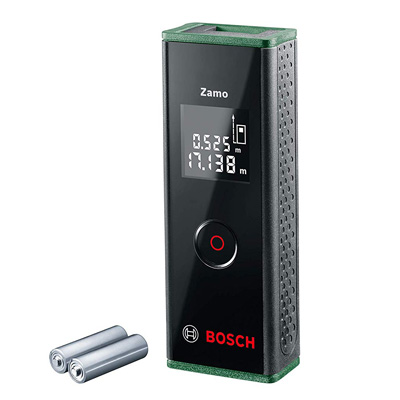 Das Berechnen von Abständen und Flächen gestaltet sich mit dem Laser-Entfernungsmesser Zamo III so einfach wie nie! Die digitale Laservermessung können Abstände von bis zu 20 m präzise und effizient gemessen werden. Besonders durch die einfache Ein-Knopf-Bedienung sorgt der Laser-Entfernungsmesser von Bosch für höchsten Benutzerkomfort - einfach Doppelklicken und Flächen sofort berechnen lassen. Die neue Schnittstelle verfügt zudem über Band-, Rad- und Linienadapter (Sonderzubehör) für eine Vielzahl von Anwendungen.