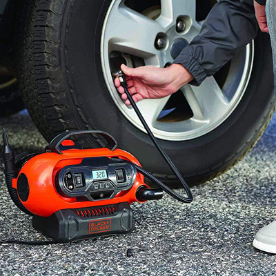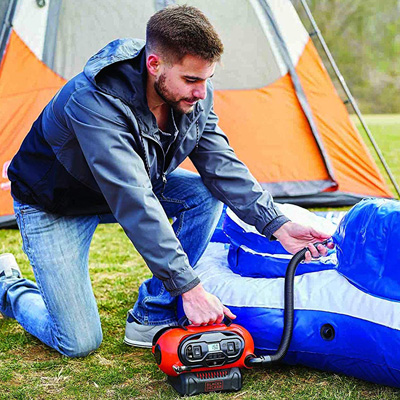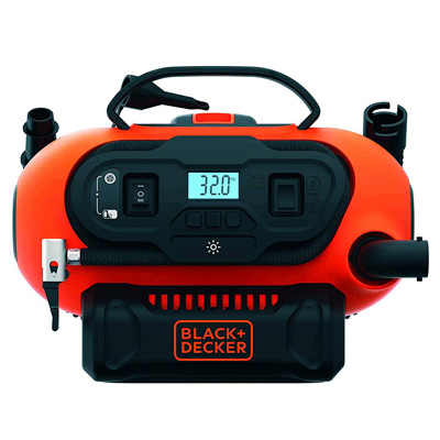 Der Akku-Kompressor BDCINF18N-QS von Black&Decker ist sehr benutzerfreundlich. Die Automatik-Abschaltung bei Erreichen des vorgewählten Drucks, das beleuchtete, leicht ablesbare Digital-Display und der hochwertige Gummitragegriff machen die Bedienung sehr komfortabel. Dank der Zubehör-Aufbewahrung am Gerät hat man die passenden Ventile und Schläuche immer zur Hand. Per Vorwahlschalter kann man zwei Betriebsarten, z.B. für Reifen / Bälle (hoher Druck / niedriges Volumen) oder für Luftmatratzen (niedriger Druck / hohes Volumen) auswählen, oder den zusätzlichen Abpump-Modus zum schnellen Entleeren der aufgeblasenen Artikel.