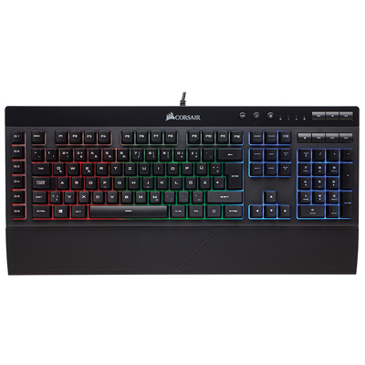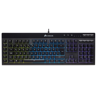 Die Corsair K55 RGB Gaming Tastatur kombiniert ein großartiges Tastengefühl, integrierte Makrospeicherung, Anti-Ghosting mit 8-Tasten-Rollover über USB und eine Drei-Zonen-Tastaturbeleuchtung, dass sich für jedes Spiel, jede Taktik und jeden Stil anpassen lässt. Mit 6 programmierbaren G-Tasten behält man immer die Kontrolle. Ganz nebenbei kann man hervorragend auf dieser Tastatur schreiben.