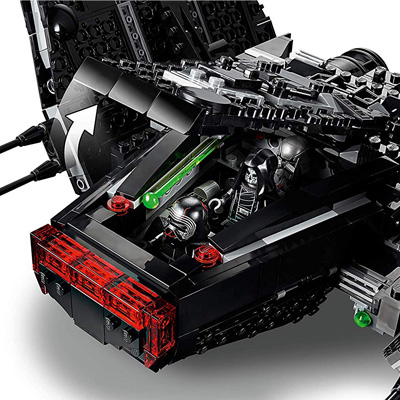 Reise mit Kylo Rens persönlichem Shuttle durch die Galaxis. Es bietet alles, was sich ein oberster Anführer nur wünschen kann, einschließlich ausklappbarer Flügel und Shooter mit Federmechanismus, um die nervigen Rebellen abzuschrecken. Das Cockpit bietet außerdem Platz für die angsteinflößende Crew, die Ritter von Ren. Dieses großartige Set beinhaltet zudem General Pryde, einen Sith-Truppler und einen Sturmtruppler der Ersten Ordnung – du kannst dich also sofort in Abenteuer stürzen!