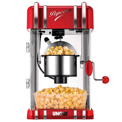 Für den gemütlichen Fernsehabend, den Kindergeburtstag oder die fröhliche Scrabble-Runde knuspriges Popcorn gefällig? Dann ist der Popcornmaker Retro von Unold im schicken Golden-Fifties-Look aus Rot-Metallic und Chrom ein Must-have!