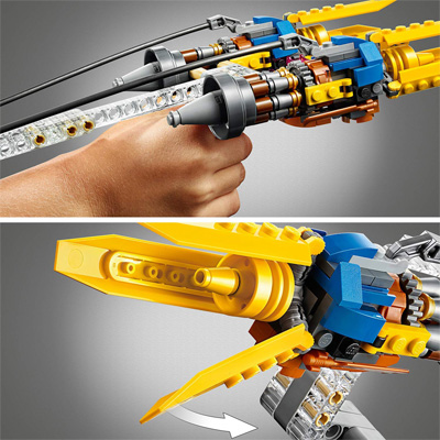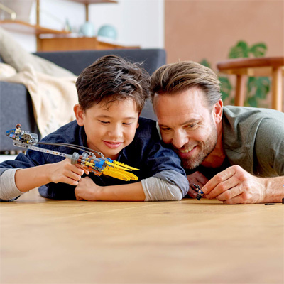 Feiere mit Anakin's Podracer 75258 das 20. Jubiläum der Lego Star Wars Spielsets. Die Neuauflage des ursprünglichen Modells 7131 von 1999 verfügt über riesige Motoren, ausklappbare Klappen, ein Cockpit mit Platz für die Minifigur des jungen Anakin Skywalkers und einen Spielhaltegriff, an dem Kinder den Podracer festhalten, um endlose Rennen aus Star Wars: Die dunkle Bedrohung im Wohnzimmer nachzuspielen. Das coole Bauspielzeug enthält außerdem eine Minifigur von Padmé Amidala sowie eine Bonus-Minifigur von Luke Skywalker und eine Präsentationsplatte mit Logo zum 20. Jubiläum, um diesen Meilenstein in der Lego Star Wars Geschichte gebührend zu feiern.