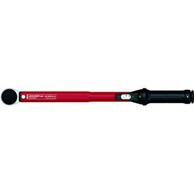 Der Drehmomentschlüssel R68900200 von Gedore Red ist ein verstellbarer Drehmomentschlüssel mit Vierkantantrieb und integrierter Knarrenfunktion, über einen geriffelten Drehknopf umschaltbar. Er ist präzise, wiederholgenau und bietet eine deutlich hör- und fühlbare Drehmomentauslösung. Die Drehmomenteinstellung erfolgt durch Drehen des Handgriffs und die Fixierung des eingestellten Wertes über die Verriegelung am Griffende. Die Skala mit Lupe für Nm ist sehr gut ablesbar. Die Auslösegenauigkeit beträgt +/- 3%. Er eignet sich für den kontrollierten Rechts- und Linksanzug.