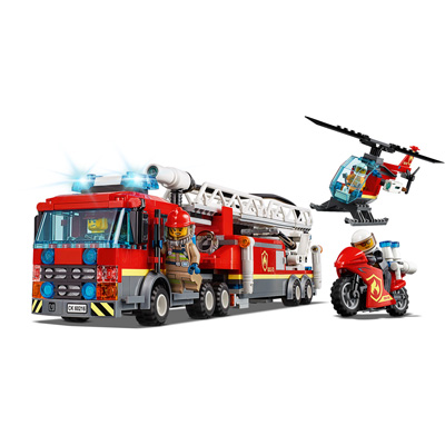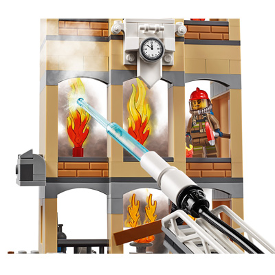 Schütze die Bürger von Lego City mit dem fantastischen Set Feuerwehr in der Stadt. Darin enthalten sind ein Feuerwehrleiterfahrzeug mit funktionierendem Licht- und Ton-, ausfahrbarer Drehleiter und einem Feuerwehrschlauch mit einer Pumpe mit „Wasserstrahl“-Funktion. Dieses aufregende Set umfasst zudem ein dreistöckiges Gebäude mit Dach, Baustelle mit Bauzaun, einen umkippbaren Lichtmast und eine Baustellentoilette mit abnehmbarer Ober- und Vorderseite sowie einen freistehenden Kran mit drehbarem Arm und funktionierender Seilwinde.
