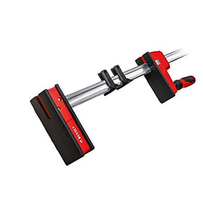 Die Bessey Korpuszwinge REVO KRE80-2K erreicht eine Spannkraft von bis zu 8.000 N und kann auch Werkstücke mit empfindlichen Oberflächen exakt parallel zueinander spannen und spreizen, auch hinter und seitlich der Schiene. Sogar Ecken und abgesetzte Kanten oder spitze und runde Oberflächen können perfekt justiert werden.
