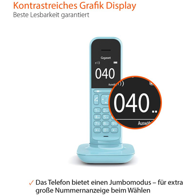 Das Gigaset CL390 HX verfügt über ein großes, kontrastreiches Schwarz-Weiß Display und überzeugt dank zwei unterschiedlichen Akustik-Profilen (hohe- und tiefe Frequenzen) für ein optimale Sprach- und Klangqualität. Über die extra große Anzeige lassen sich die Telefonnummern und -menüs optimal erkennen, dabei fasst das Telefonbuch bis zu 150 Einträge/Nummern. Über den Anrufschutz können bis zu 32 Rufnummern blockiert werden. Das CL390 besitzt eine Raumüberwachung (Babyphone) Funktion mit Gegensprech-Funktion sowie eine Direktruf-Funktion.