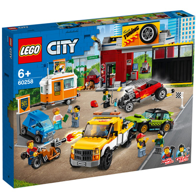 Kinder, die für Autos schwärmen werden von dem Lego City Spielset Tuning-Werkstatt (60258) hellauf begeistert sein. Es gibt eine Werkstatt, einen Abschleppwagen und sogar einen kleinen Gebrauchtwagenhändler, der Schrottkarren zu Schnäppchenpreisen verhökert. Doch das ist längst nicht alles. Coole Fahrzeuge dürfen natürlich auch nicht fehlen, zum Beispiel der siegreiche Hot Rod von Tread Octane oder das verrückte Motorrad mit Raketenantrieb von Harl Hubbs.