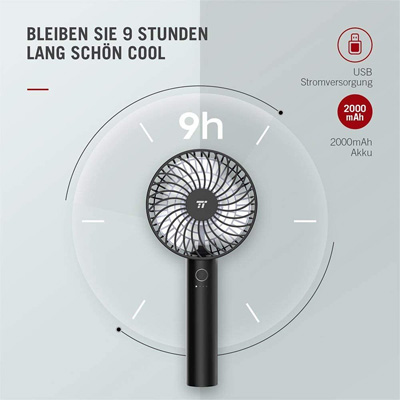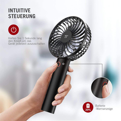 Der TaoTronics Mini Handventilator ist ein tragbarer Ventilator mit wiederaufladbarem 2000mAh Akku, 4 Geschwindigkeitsstufen und Speicherfunktion. Der tragbare Erfrischer ist ideal für Zuhause, Büro & Reisen geeignet.
