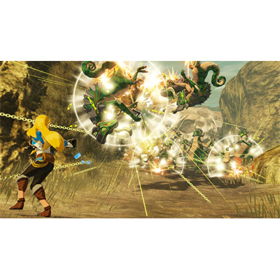 Hyrule Warriors: Zeit der Verheerung verbindet actionreiches Gameplay mit den atemberaubenden Landschaften von The Legend of Zelda: Breath of the Wild zu einem neuen, aufregenden Erlebnis. Ziehe gemeinsam mit einem weiteren Spieler auf einer Nintendo Switch-Konsole in die Schlacht und bekämpft die Verheerung Ganon als Team. Kämpft Seite an Seite oder teilt euch auf, um weite Teile des Schlachtfelds zu dominieren, Missionsziele zu erfüllen und die Mächte der Finsternis zu besiegen!