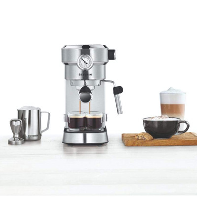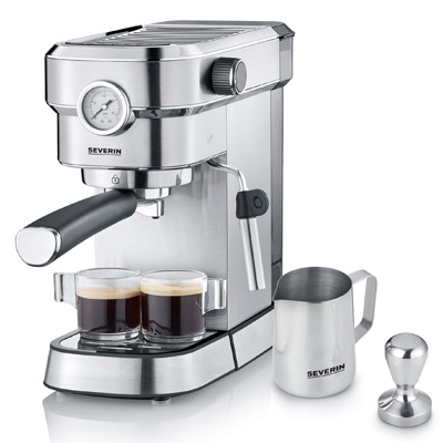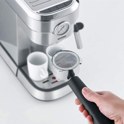 Mit der Espressomaschine Espresa Plus KA 5995 von Severin werden Sie selbst zum Barista und bereiten sich aromatischen Espresso oder klassischen Cappuccino einfach zuhause zu. Die Kaffeespezialistin ist mit einem massiven Siebträger und 3 Einsätzen für eine Tasse Espresso, zwei Tassen oder ESE-Pads ausgestattet. Für ausgewogenes Aroma und eine feine Crema wird der Espresso bei einem idealen Brühdruck von 9-11 bar gebrüht. Den Druck haben Sie dank Manometer genau im Blick.