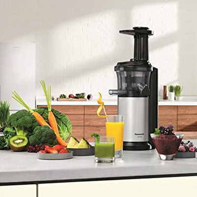 Einfach mal köstliche Säfte und gefrorene Kreationen wie Sorbets, Frozen Jogurt u.v.m. genießen! Mit dem neuen Panasonic Slow Juicer MJ-L500 macht man im Handumdrehen aus frischem oder gefrorenem Obst und Gemüse gesunde Energiespender, mit denen man sich ausgewogen ernährt. Die kraftvolle, edelstahlverstärkte Press-Schnecke sorgt mit ihren 45 Umdrehungen pro Minute für höchste Effizienz und Qualität. Die Saftausbeute des MJ-L500 ist schlicht beeindruckend und im Vergleich zu herkömmlichen Verfahren deutlich höher. Dank der geringen Drehzahl sind die Zutaten keiner Hitzeentwicklung ausgesetzt und behalten so ihre lebenswichtigen Vitamine, Enzyme und Mineralstoffe.