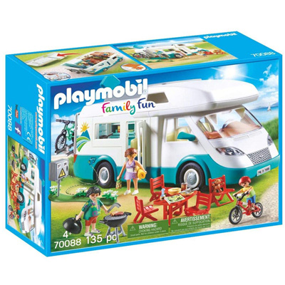 In diesem bestens ausgestatteten Familien-Wohnmobil trifft Luxus auf Campingspaß. Mit diesem fahrenden Zuhause muss die Familie auch im Campingurlaub auf nichts verzichten: Kochnische, Minibad und Schlafplätze, alles ist dabei. Am Urlaubsziel angekommen werden gleich Tisch, Stühle und der Grill ausgepackt und das Kinderfahrrad vom Fahrradträger geholt. Während der Kleine die ersten Runden dreht, decken Mama und Papa den Tisch und der Grill wird angeworfen. Das wird ein traumhafter Familien-Urlaub! Wohnmobil der Extraklasse: Für noch mehr Spielspaß können Dach und Seitenwand des Wohnmobils abgenommen werden. Im Inneren des Fahrzeugs befinden sich drehbare Sitze und der Tisch kann zur Liegefläche umfunktioniert werden.