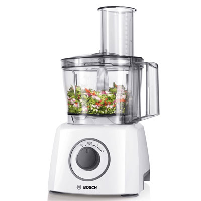 Die Kompakt-Küchenmaschine Bosch MCM3100W geht bei nahezu allen Arbeiten zur Hand und macht vieles leichter. Die Kompakt-Küchenmaschine hackt und zerkleinert Zwiebeln, Nüsse und vieles mehr, dank vielfältigem Zubehör wie Edelstahl-Universalmesser. 800 Watt Leistung zum Zerkleinern und Hacken machen kreative und ambitionierte Küche so einfach wie noch nie. Die MCM3100W verfügt über zwei Geschwindigkeitsstufen und eine Momentstufe für optimale Verarbeitung. Sie ist kompakt und platzsparend mit integrierter Zubehörschublade.
