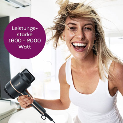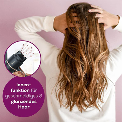 Mit dem leistungsstarken Haartrockner trocknen und stylen Sie Ihr Haar wie im Friseursalon. Durch die drei Gebläse- und Heizstufen können Sie den Haartrockner perfekt auf Ihre individuellen Bedürfnisse einstellen. Eine zusätzliche Kaltstufe sorgt für die finale Fixierung Ihrer Frisur.