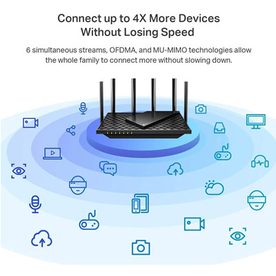 Der TP-Link Archer AX73 ist ein Router für geschäftige Haushalte, in denen mehrere Personen gleichzeitig streamen und spielen. Dieser WiFi-6-Router ist mit der neuesten WiFi-Version ausgestattet. Die drahtlose Verbindung ist daher schneller als bei früheren Versionen. Du kannst mit mehreren Geräten gleichzeitig online gehen, ohne dass dein WLAN langsamer wird. Ideal für vielbeschäftigte Familien.