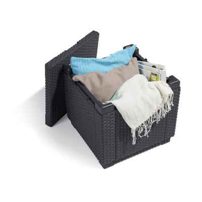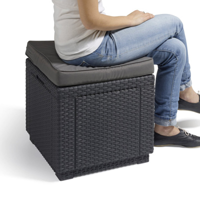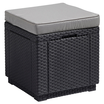 Allibert macht mit schönen und bequemen Loungemöbeln aus Ihrem Garten, Terrasse und Balkon den schönsten Ort zum Genießen. Der formschöne und trendige Hocker ist ein kleines Wunder. Er hat eine naturgetreue und offene Rattanoptik, die toll zu anderen Allibert Loungemöbeln passt. Der Hocker Cube ist vielseitig einsetzbar und wird das Highlight in Ihrem Garten oder auf der Terrasse. Dieser Kunststoff Hocker ist die perfekte Ergänzung für Ihre Gartenmöbel, da er platzsparend ist und zugleich so viele Funktionen hat.