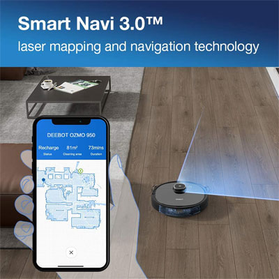 Der DEEBOT OZMO 950 vereint die Mobilität eines herkömmlichen Saugroboters mit der Saugkraft gängiger kabelloser Staubsauger. Er verfügt über drei Saugstufen, damit du für jede Verschmutzung und Bodenart die passende Saugkraft einstellen kannst. Durch den neuen kraftvollen Motor und die lange Batterielaufzeit saugt und wischt er auch große Wohnflächen in einem Durchgang. Die verbesserte Navigations-Technologie kartiert und erfasst den Raum nicht nur besser, sondern ermöglicht nun zum ersten Mal auch die Speicherung mehrerer Etagen.