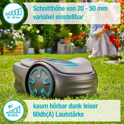 Vollautomatisch, präzise und zuverlässig kümmert sich der Gardena Sileno minimo um die Rasenpflege. Er hinterlässt dank SensorCut System keine Streifen, sondern sorgt für ein ausgewogenes Schnittbild. Er ist für Rasenflächen bis 500 m² geeignet. Enge Passagen und Sackgassen werden dank CorridorCut-Funktion problemlos gemäht. Für die nötige Orientierung sorgt ein Begrenzungskabel, welches den Mähbereich definiert. Die Schnitthöhenverstellung des Mähers reicht von 2 bis 5 cm.