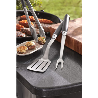 Das 3-teilige Grillbesteck von Weber ist ein unerlässliches Hilfsmittel für jeden Grillfan. Es beinhaltet eine Grillzange, einen Grillgutwender und eine Gabel und besteht aus hochwertigem Edelstahl mit Kunststoffgriffen zur angenehmen Handhabung. Mit dem durchdachten, langlebigen und vielfältig erprobten Grillzubehör von Weber steht einem erfolgreichen Grillvergnügen nichts mehr im Wege.