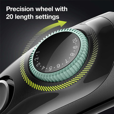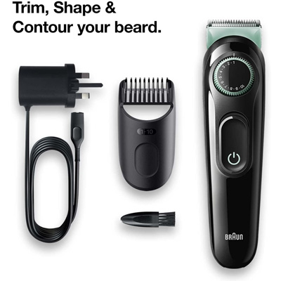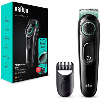 Der BT3321 Bartschneider von Braun schneidet in der richtigen Länge, sorgt für präzise Konturen und ermöglicht gleichmäßiges Trimmen – die Grundlagen eines stylischen Looks. Er verfügt über eine breitere Trimmfläche, um mehr Haare bei jedem Zug zu erfassen und zu schneiden (gegenüber vorherigen Braun Trimmern). Der abnehmbare Kammaufsatz bietet 20 Längeneinstellungen von 1 bis 10 mm. Zusammen mit dem Präzisionsrad mit 0,5-mm-Schritten bietet der BT3321 Bartschneider von Braun ultimative Kontrolle und Präzision. Nach zehn Stunden ist der BT3321 vollständig aufgeladen und 40 Minuten kabellos verwendbar. Die LED-Anzeige am Netzteil informiert über den Ladestatus. Nach Verwendung kann man Trimmer und Aufsatz bequem unter fließendem Wasser reinigen.