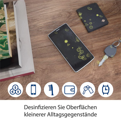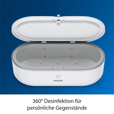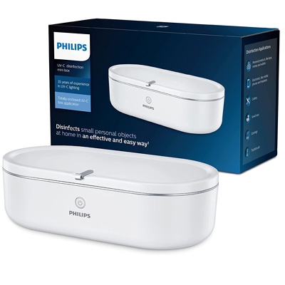 Mit der Philips UV-C Mini Desinfektionsbox desinfizieren Sie einfach und effektiv kleine persönliche Gegenstände zu Hause, um sich vor Krankheitserregern zu schützen. Das Gerät ist einfach in der Bedienung dank der intuitiven Steuerung und es besitzt eine klare Digitalanzeige. Das UV-C-Licht schaltet sich automatisch aus, wenn die Abdeckung geöffnet wird. Dank der hochklappbaren Abdeckung lassen sich Gegenstände einfacher hineinlegen.