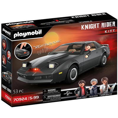 Genauso futuristisch wie das Original Knight Rider-Auto begeistert auch das Playmobil-Auto im Kleinformat mit seinem authentischen Design und vor allem mit seinen elektronischen Funktionen: Der Playmobil K.I.T.T. ist mit einem Licht- und Soundmodul ausgestattet, das Sätze aus der Serie mit der kultigen Stimme von K.I.T.T. zitiert und selbstverständlich leuchtet auch das ikonische Scannerlicht auf.