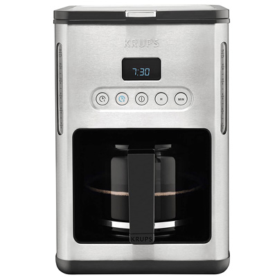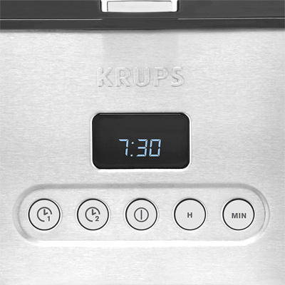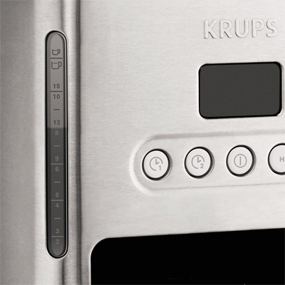 Die Krups Control Line KM 442D ist eine programmierbare, hochwertige Filter-Kaffeemaschine aus Edelstahl. Sie bietet ein Fassungsvermögen von 1,25 Liter für 10 große bis 15 kleine Tassen Kaffee. Der aktuelle Wasserstand lässt sich bequem von der außenliegenden Wasserstandsanzeige ablesen. Mithilfe der programmierbaren automatischen Einschaltung ist die Control Line KM 442D unter der Woche oder am Wochenende stets betriebsbereit. Außerdem wird der Kaffee mit der praktischen "Keep Warm" Funktion bis zu 30 Minuten lang warm gehalten.