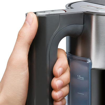 Der Siemens TW86103P Wasserkocher ist ein schicker Heißmacher für moderne Küchen. Dank intelligenter Features erhitzt er Ihnen das Wasser immer auf die optimale Temperatur und hält es auf Wunsch sogar warm.