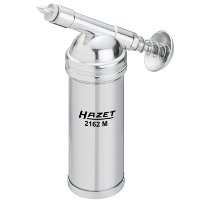 Die besonders handliche und leichte Mini-Fettpresse 2162M von HAZET hat ein Fassungsvermögen von 80g, eignet sich besonders zur präzisen Schmierung von Schlagwerken, Spindeln etc. und wird mit losem Fett befüllt. Sie erzeugt einen Druck von bis zu 1.000 PSI / 69 bar. Im Lieferumfang sind Schmiernippel in 50° und 90° Ausführung enthalten.
