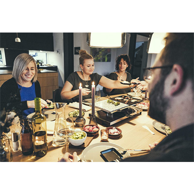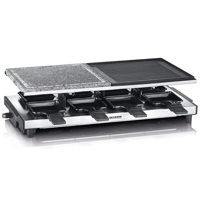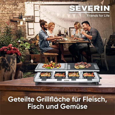 Mit dem Raclette RG 2373 lassen sich kreative Kombinationen verschiedener Lieblingszutaten kreieren und mit Käse überbacken. Das stufenlos regulierbare Thermostat sorgt für schnelles Aufheizen und optimale Temperatur. Für fettfreie Grillerlebnisse sorgen die antihaftbeschichtete Wendegrillplatte und der Naturgrillstein. Er wird von der darunterliegenden Heizspirale aufgewärmt und speichert die Wärme besonders gut und lange, wodurch das Grillgut schonend gegart wird und somit saftig und zart bleibt. Die praktische Fettaufnahmerille fängt das Eigenfett des Grillguts auf und verhindert dadurch das Überlaufen und Heruntertropfen des Fetts.