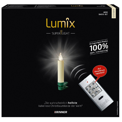 Mit den Lumix SuperLight Christbaumkerzen hat Krinner die wahrscheinlich hellste Christbaumkerze der Welt auf den Markt und damit auch an unsere Christbäume gebracht. Dank kabelloser Technik können die einzelnen Kerzen problemlos am ganzen Christbaum verteilt werden. Mit Energie werden sie von Batterien versorgt. In diesem Set sind 12 Kerzen enthalten. Per Fernbedienung, die natürlich auch in dem Set enthalten ist, können die Weihnachtskerzen aktiviert werden. Wundervolles warmweißes LED-Licht sorgt für feierliche Stimmung.