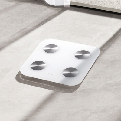 Die smarte Körperanalysewaage Huawei Scale 3 misst zuverlässig alle wichtigen Werte, wie Gewicht, BMI (Körpermasse Index), Körperfettanteil, Skelettmuskelmasse, Fettabbaugewicht, Körperwasseranteil, Protein, Knochenmineralgehalt, BMR (Basalstoffwechselrate), viszerales Fettniveau und Herzfrequenz mit Hilfe des Bioimpedanz-Verfahrens. Mit einem schlichten Design und vier auf der Oberfläche angebrachten Edelstahl Elektroden, einer LED Anzeige und einer Höhe von lediglich 2,37 cm fügt sie sich in jedes Umfeld tadellos ein.