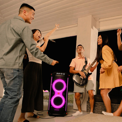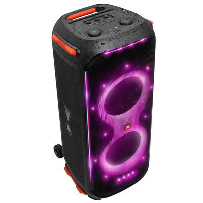 Die spritzwasserfeste PartyBox 710 verwandelt deine nächste Veranstaltung in eine echte Party, ein Konzert oder einen Nachtclub. Mit einer einzigartigen und farbenfrohen Lichtshow, die synchron zum JBL Original Pro Sound läuft. Mit den minimalistischen und intuitiven Bedienelementen auf der Oberblende und der PartyBox-App kannst du musikalische und visuelle Erlebnisse auf höchstem Niveau schaffen. Du kannst sowohl die blinkenden Stroboskoplichter als auch den fantastischen Sound der beiden Hochtöner und der bassreichen Tieftöner anpassen. Mit True Wireless Sound lassen sich zwei PartyBox 710 mit einem Knopfdruck koppeln für ein noch größeres Publikum. Und mit dem handlichen Griff und den robusten Rädern nimmst du die gute Laune dorthin mit, wo deine Party steigt.