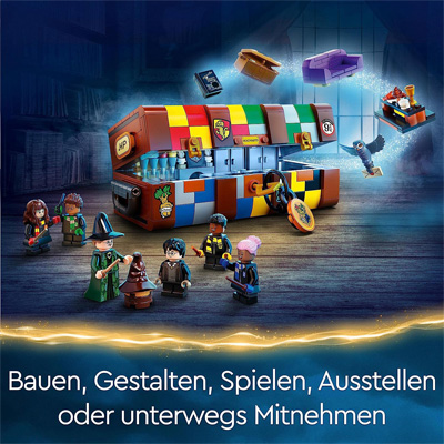 Der Lego Harry Potter Hogwarts Zauberkoffer (76399) für Kinder ab 8 Jahren lässt sich individuell verzieren und überallhin mitnehmen. Umgestaltbare Schauplätze und Personen aus den Harry Potter Filmen laden zum Bauen und Spielen ein. Hogwarts Abenteuer für dein Kind: Dein Kind kann diesen Koffer aus Lego Steinen mit den Farben seines Lieblingshauses auf Hogwarts und mit verschiedenen Aufklebern schmücken, genau wie es die Hogwarts-Schüler im Film gemacht haben.