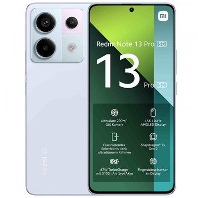 Das Xiaomi Redmi Note 13 Pro liefert mit seiner 200 MP Kamera ultraklare Bilder und Videos in 4K, mit denen der nächste Blockbuster nur einen Tastendruck entfernt ist. Das 6,67" große AMOLED Display liefert erstaunliche Farben und ist zudem mit einer Bildwiederholrate von 120 Hz sowie einer Touch-Abtastrate von 2.160 Hz ausgestattet. Der leistungsstarke Qualcomm Snapdragon 7s Gen 2 Prozessor sorgt für eine reibungslose Nutzung, fließende Übergänge und blitzschnelle App-Starts. Ein 5.100 mAh großer Akku lässt den Nutzer nie im Stich und macht das Redmi Note 13 Pro zu einem Dauerläufer. Das Redmi Note 13 Pro ist nach IP54 gegen Staub- und Spritzwasser geschützt, damit das nicht einmal 8 mm dünne Gehäuse gegen jedes Abenteuer gewappnet ist.