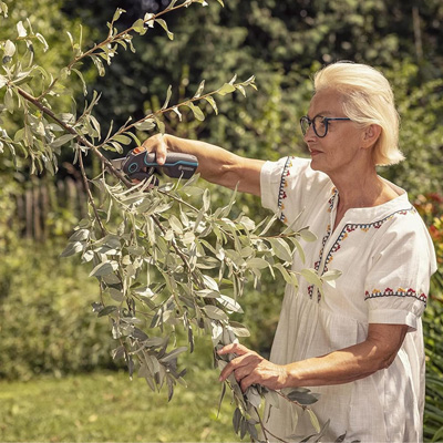 Die Gardena Akku-Strauchschere AssistCut ist mit ihrem Schneid-Durchmesser von 25 mm ideal dafür geeignet, mühelos Zweige, junge Triebe, Blumen sowie frisches Holz zu schneiden. Durch den intelligenten Sensor, welcher einsetzt sobald ein Widerstand erkannt wird, hilft die batterieunterstützte Gartenschere mit bis zu 5-mal zusätzlicher Power (im Vgl. zu einer herkömmlichen Gartenschere) bei der Gartenarbeit. Bei voller Akkuladung ermöglicht die AssistCut bis zu 1400 batterieunterstützte Schnitte. Dank der ergonomisch geformten Griffe und der zweistufigen Öffnungsweite liegt sie angenehm in der Hand und ist das ideale Schneidwerkzeug für jede Handgröße.