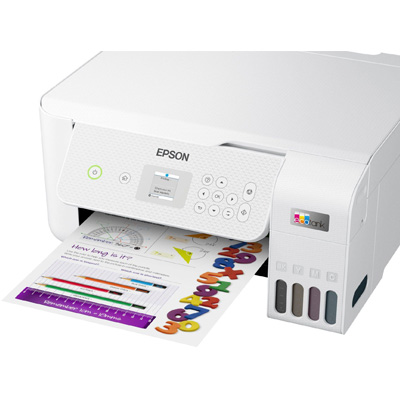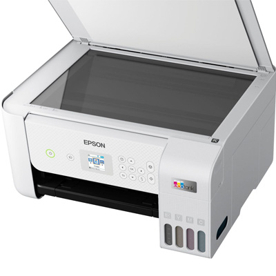 Der EcoTank ET-2826 setzt auf Epsons Tintenflaschen-System, bei dem keine Tintenpatronen mehr genutzt werden, sondern Tinte direkt in einen Tank im Drucker eingefüllt wird. Das reduziert die Kosten und erhöht die Reichweite des Drucksystems. Der EcoTank ET-2826 kommt mit Tinten für eine Reichweite von bis zu 4500 Seiten Schwarzdruck (ISO) und 7500 Seiten Farbdruck (ISO) im Lieferumfang und bietet neben der Druckfunktion einen Flachbettscanner und eine Kopiereinheit. Darüber hinaus lässt er sich per WLAN in ein Netzwerk integrieren. Mobilgeräte können über Wi-Fi direct mit dem Drucker kommunizieren. Den Überblick behalten Nutzer über das Farbdisplay an der Vorderseite.