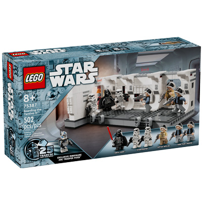 Dieses Lego Bau- und Spielset für Kinder ab 8 Jahren macht noch einmal lebendig, wie Darth Vader mit seinen Sturmtrupplern die Tantive IV im Film "Star Wars: Eine neue Hoffnung" entert. Das Set beinhaltet ein detailgetreu nachgebildetes Modell des Korridors der Tantive IV, wo sich Darth Vaders Sturmtruppler ein Gefecht mit den von Captain Antilles angeführten Rebellen liefern. Durch Betätigung eines Hebels wird die Eingangstür "aufgesprengt", wobei die Rebellen umgestoßen werden. Das Set kann mit Verbindungselementen an ein zweites, identisches Set (separat erhältlich) angebaut werden, womit der Korridor erweitert wird. Ein tolles Set für Fans von Lego Star Wars, das Darth Vader als Minifigur, 2 Sturmtruppler, 2 Rebellen und Captain Antilles als Figuren enthält. Zur Feier des 25-jährige Jubiläums von Lego Star Wars ergänzt die spezielle Minifigur ARC Trooper Fives dieses Set.